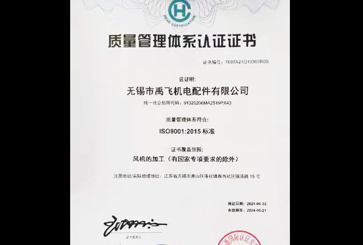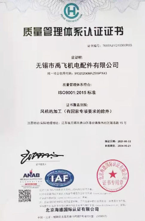公司執(zhí)行GB/T22712-2008《變電機用G系列冷卻風機技術規(guī)范》國家標準,并且通過了ISO 9001:2015質量管理體系認證、ISO 14001:2015環(huán)境體系認證,已擁有年產各類風機、冷卻器十萬臺套的較大生產規(guī)模,產品遠銷東南亞等國家與地區(qū)。